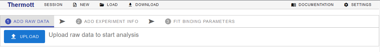 To upload your experiment data, use the UPLOAD button located at the first data analysis tab ADD RAW DATA.