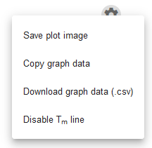 Data from the sample experiment plot can also be exported. Click on the cog icon below the chart and select to save the plot as an image, save graph data in CSV file or copy the graph data to the clipboard. Save plot image will save the plot image as a PNG file. Copy graph data will copy the data from the plot to the clipboard to be pasted into the spreadsheet. It is useful if you want to use your own software for visualization.