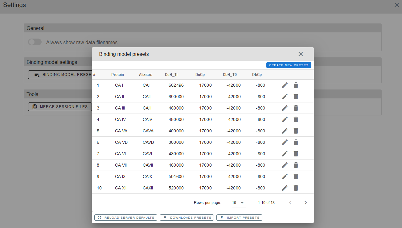 You can save your protein’s custom binding presets for future usage. This can be done via BINDING MODEL PRESETS in SETTINGS by simply clicking CREATE NEW PRESET and filling in your parameters. For more details on parameters please refer to the article CITATION.