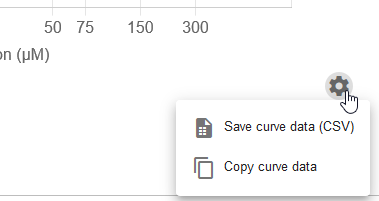 Fitting curve data can be accessed by clicking cog icon below the chart. It allows you to save the plot data as a CVS file or copy the data to clipboard and subsequently paste it into other spreadsheet-based software (Microsoft Excel, Libre office Calc and others). It is useful if you want to use your own software for visualization.
